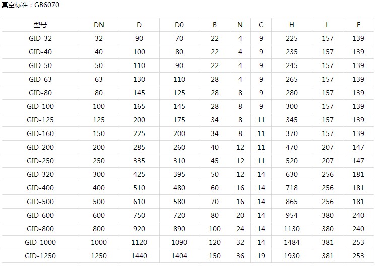 用途和使用范圍: GID系列電動真空蝶閥是在1.3×10-5~3×105Pa的真空系統中用來開啟或隔斷氣流的電動閥門。