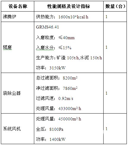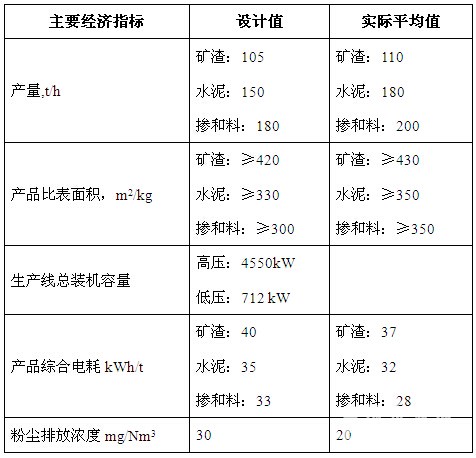 該生產(chǎn)線是按照年產(chǎn)60萬噸礦粉/100萬噸水泥設計,粉磨系統(tǒng)主要設備配置及性能參數(shù)見表1: