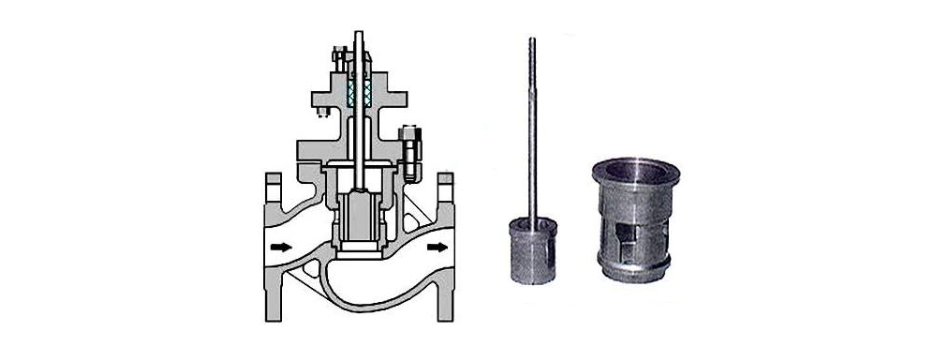5,由于閥塞底部為平面,在產生氣蝕時,氣泡破裂產生的沖擊波作用在閥塞下面的窨內,沖擊能量沒有作用在閥塞上,而是被介質自身吸收。而單、雙座閥沖擊能量卻直接作用在其閥芯頭部,因此套筒閥氣蝕的破壞比單、雙座閥小。另一方面,套筒密封面與節流面(窗口)分開,介質高速流動過密封而后沖刷也大為減少,所以套筒閥的使用壽命比單、雙座閥長。